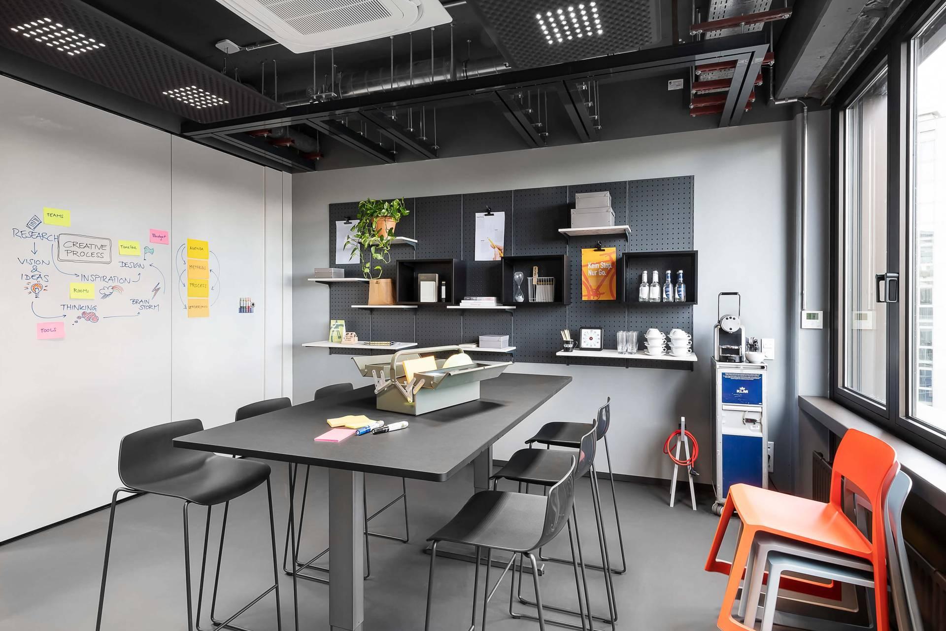 Die beeindruckende Industriearchitektur, die durch rohe Materialien und klare Linien gekennzeichnet ist, schafft eine Atmosphäre, die Kreativität und Innovation fördert. Die Besprechungsräume sind mit modernster Technologie ausgestattet, um reibungslose und professionelle Präsentationen zu gewährleisten. Darüber hinaus steht ein umfangreicher Catering-Service, einschließlich Kaffeepausen und Geschäftsessen, für die Teilnehmer zur Verfügung.